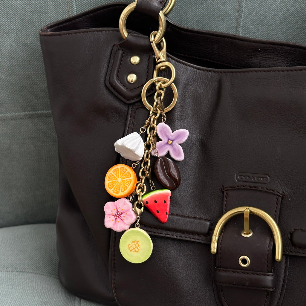 The charms will come attached to a clasp so you do not need any tools! The idea is that over time you can build your own bag charm and change out charms! Or use your charms another way and add them to anything you'd like - a necklace, your lip gloss, a zipper pull on any bag, etc.